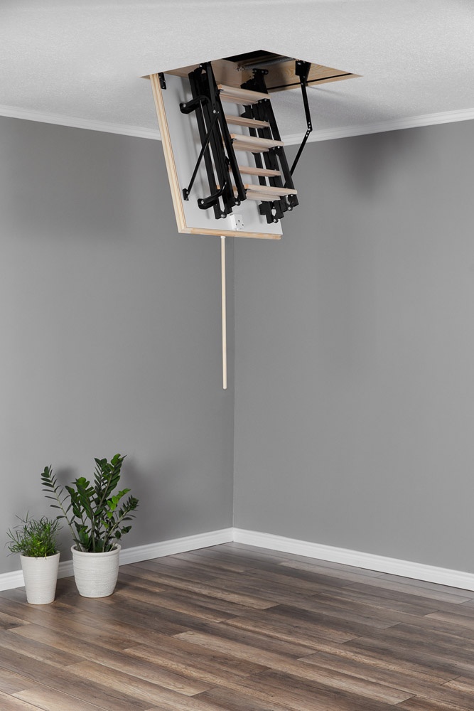 • Trappen felles sammen i tre seksjoner, og tar svært liten plass på loftet