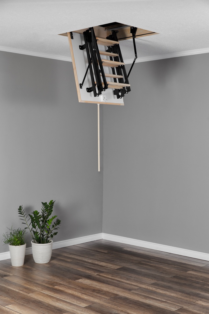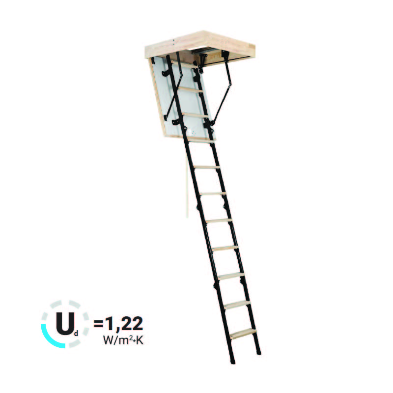 • Trappen felles sammen i tre seksjoner, og tar svært liten plass på loftet